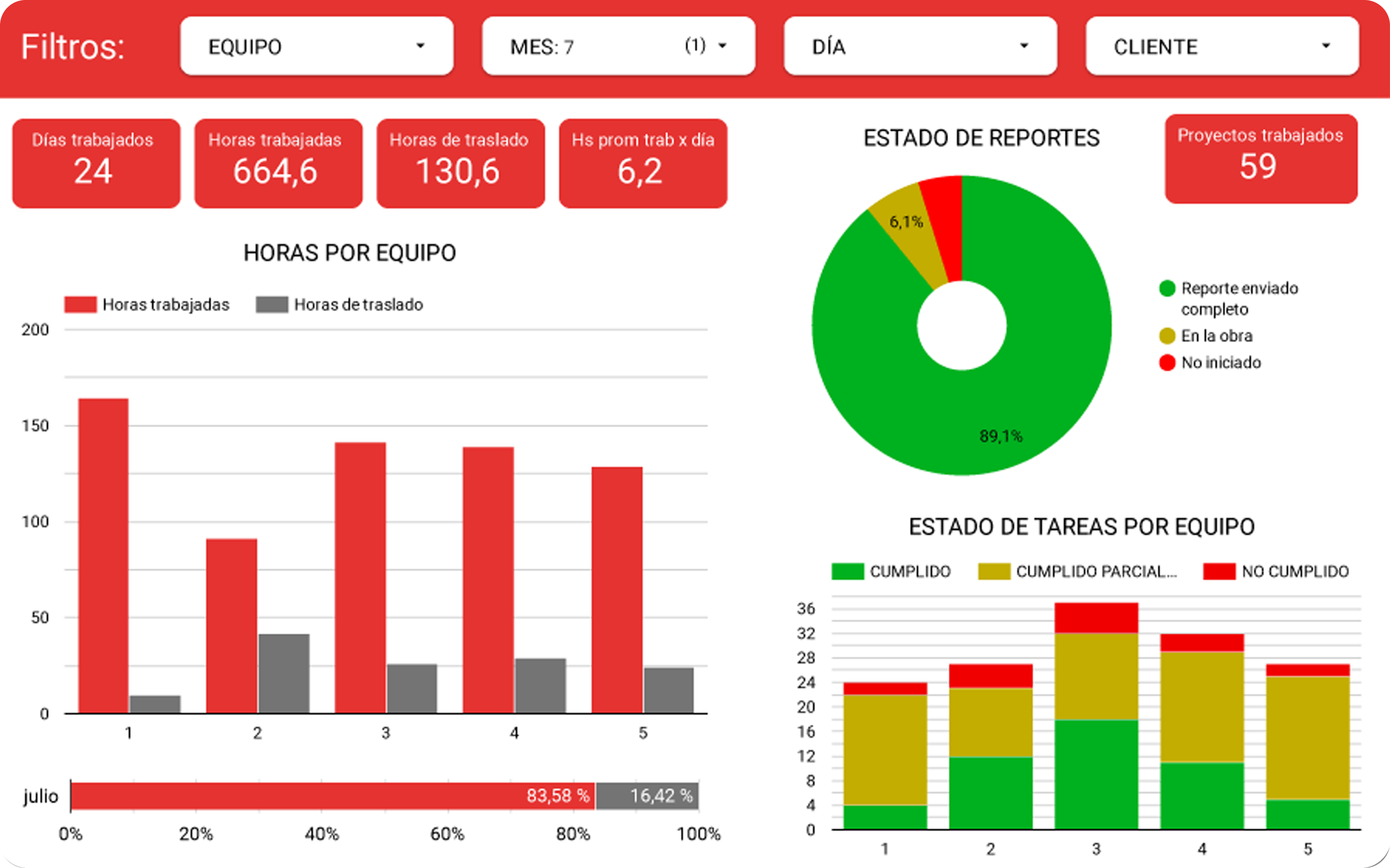 We develop dynamic dashboards where you can interactively visualize data, providing a key tool for monitoring and analyzing the state of your company, seeking to expose trends, possible problems, find answers and view metrics in real time. The dashboards feature multiple filters, interactive graphs, maps and automated periodic reports, allowing decision makers to save time on operational tasks and focus on what only they can do.